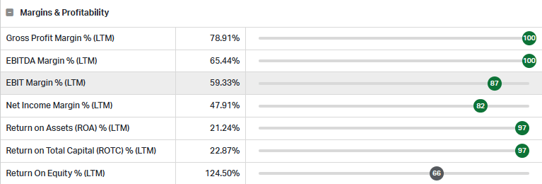 Meta generates some of the strongest margins in large-cap tech, with operating margins north of 40% and returns on capital that rival — and in some cases exceed — its peers.
