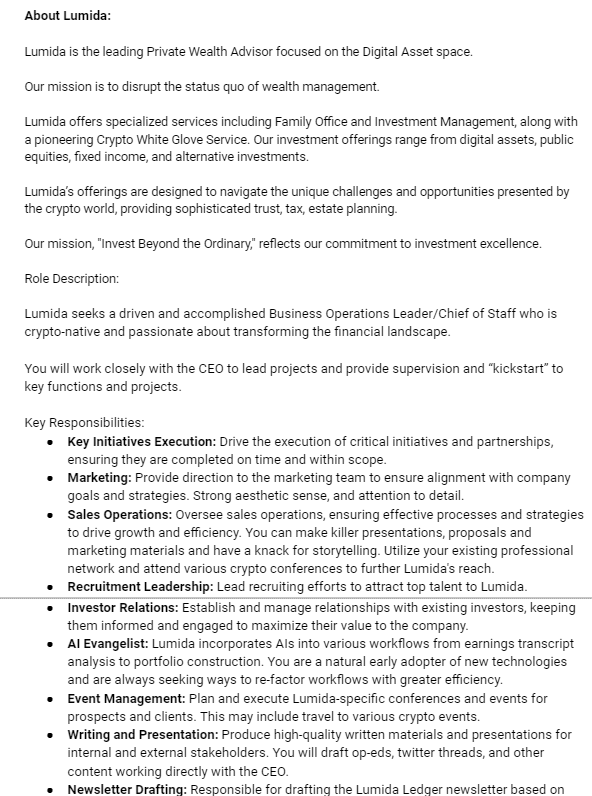 Explore becoming a Lumida Wealth client: learn more about our Crypto White Glove Service or Click here to explore our Wealth & Family Office Services.