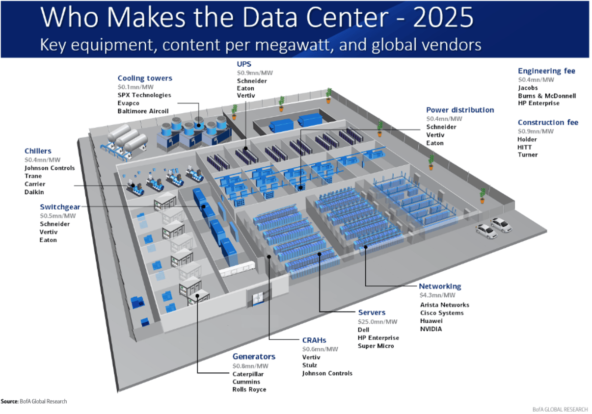 The backbone of this investment is data centers, the new “factories” of the digital era.