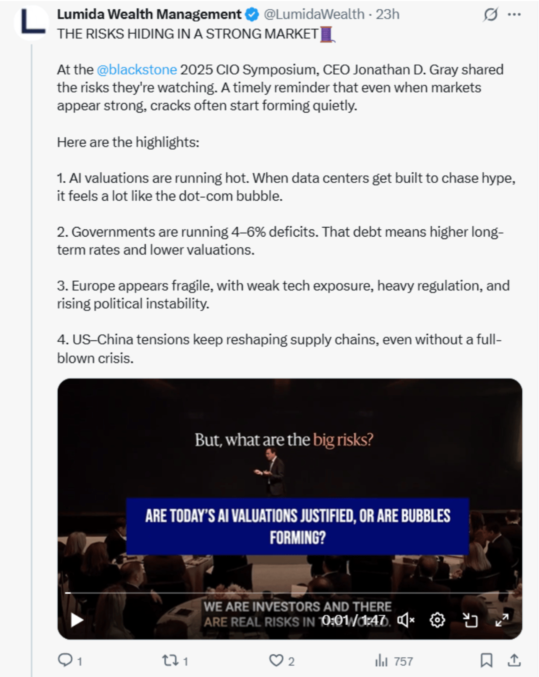At Blackstone’s 2025 CIO Symposium, CEO Jonathan Gray warned that soaring AI valuations, government debt, fragile Europe, and US–China tensions may be masking deeper risks in today’s markets.