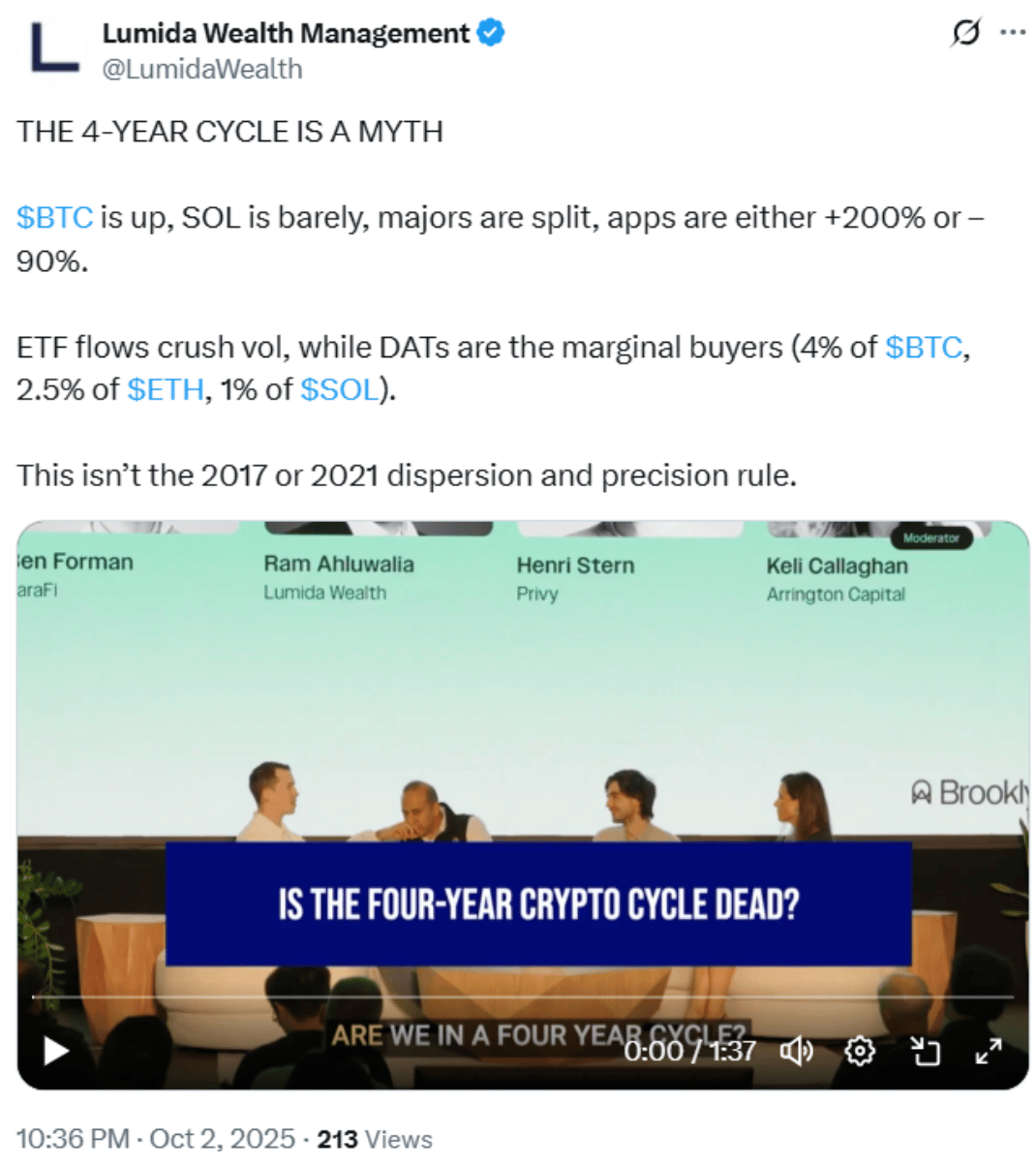 Ben Forman challenges crypto orthodoxy, arguing today’s market is shaped more by ETF flows and DAT buyers than the old four-year cycle patterns of past bull runs.