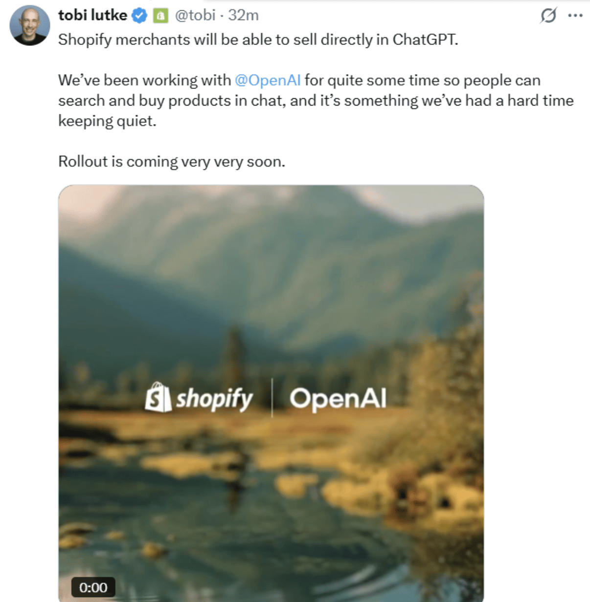 Shopify’s upcoming in-chat checkout with ChatGPT is the new distribution layer for merchants.