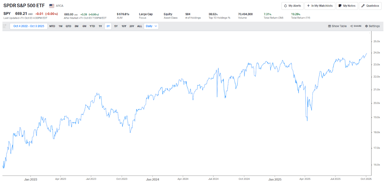 With this latest rise, P/E NTM for SPY reached 24x, its highest in the last 3 years.