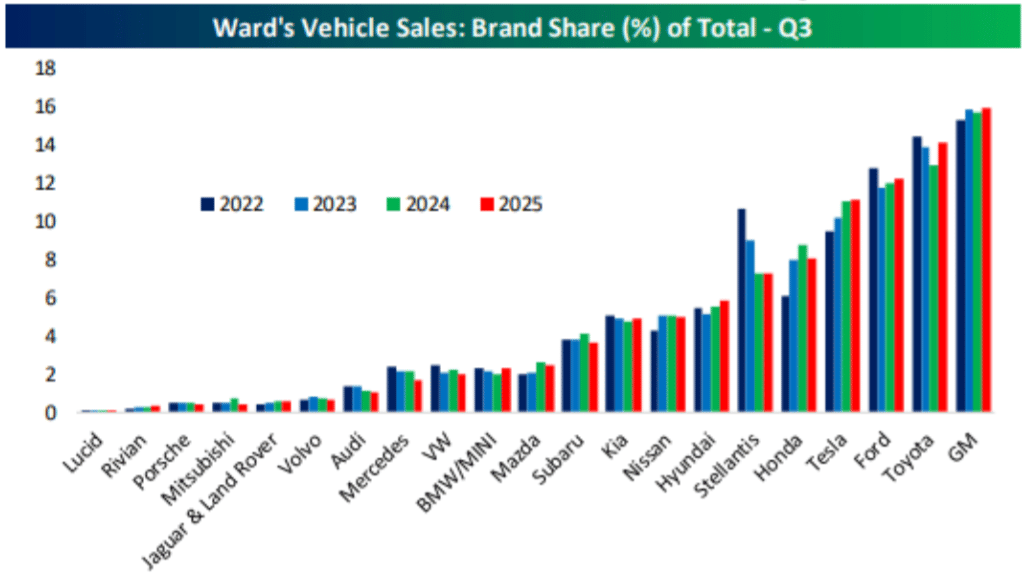 Tesla remained competitive, though its market share narrowed. Even Rivian and Lucid surprised to the upside.