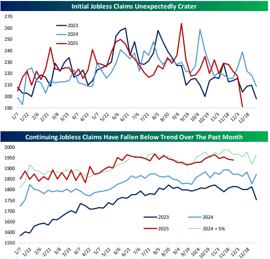 Initial claims cratered to their lowest level since 2022, and excluding that period, the lowest since 1969.