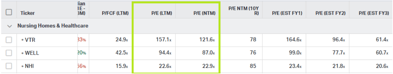 REITs like Welltower have a PE ratio of 94x.