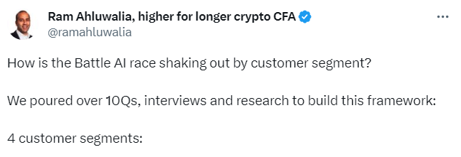 There’s a lot happening on the AI front. We recommend reading this thread which is how we see how competition playing out for 3 core customer segments: Consumer, Enterprise, Government / Defense.