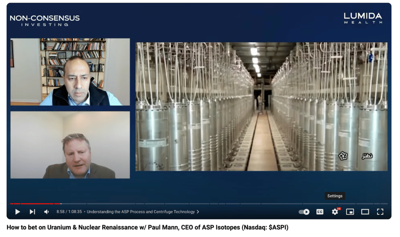 Please see our video interview with aul Mann, Chairman and CEO of ASP Isotopes (ASPI) explaining HALEU.
