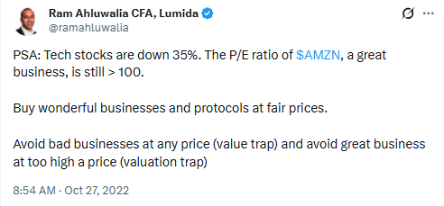 We won’t be the buyers of Google at current valuations - it was a solid purchase in July when AI-kills-search narrative led to massive drawdowns. It was priced at 20x P/E NTM then- today, it’s at 30x.