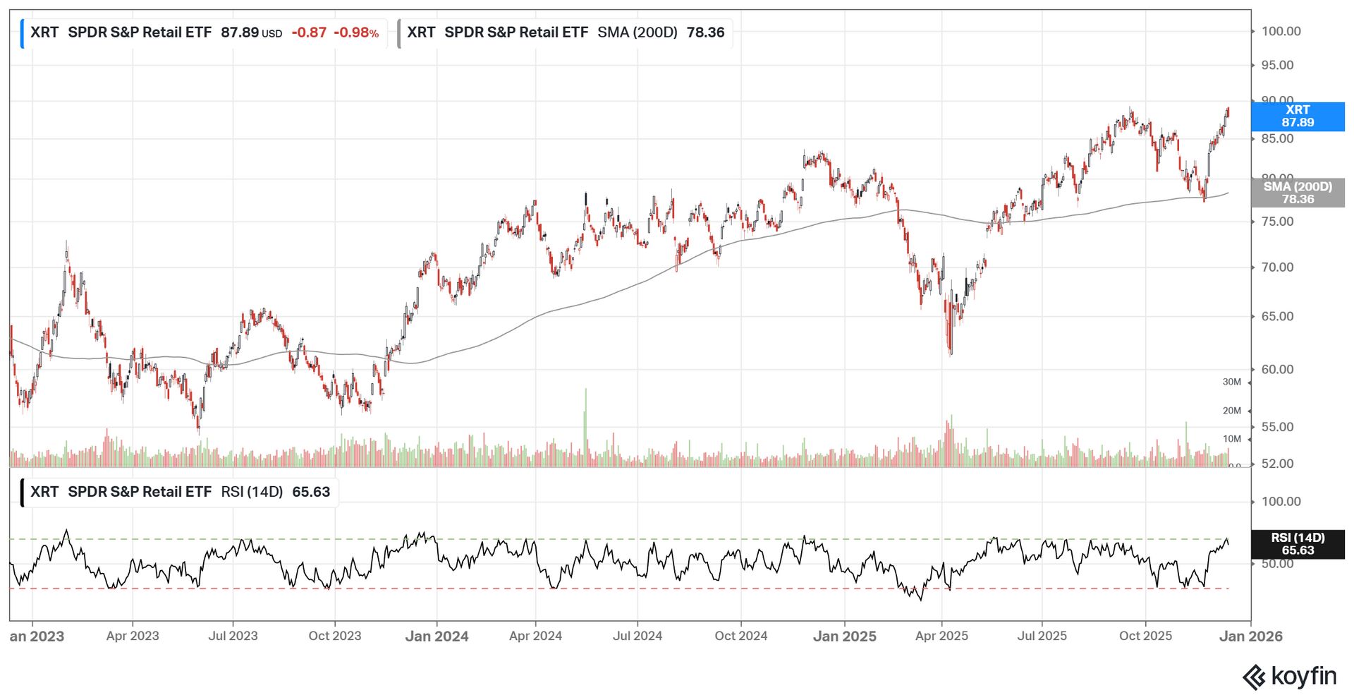 Look at the Retail ETF index and you can see markets are already discounting spend in the quarters ahead: