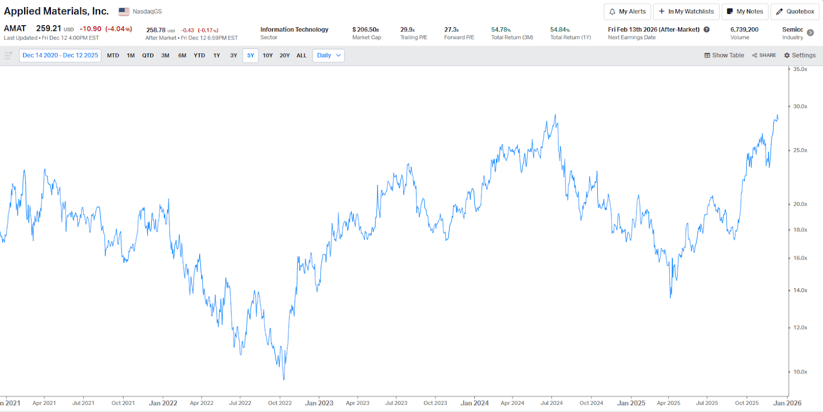Take a look at the valuation multiple for Applied Materials for example. We are now in the nosebleed section.