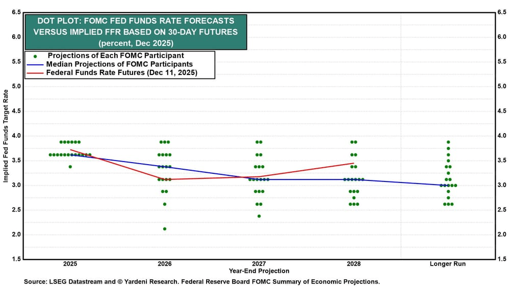 The Fed cut 25 bps this week as expected. Since September 2024, the Fed has cut 175 bps, bringing the federal funds rate into the mid-3% range.