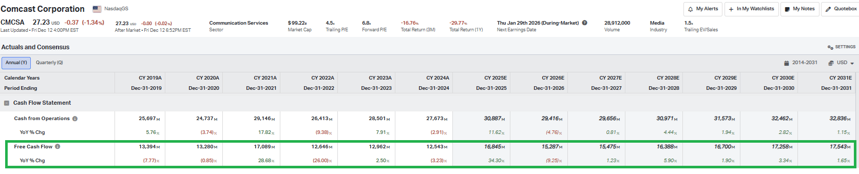 In fact, Comcast has grown their revenues and free cashflow in recent years, and analysts expect that to continue.