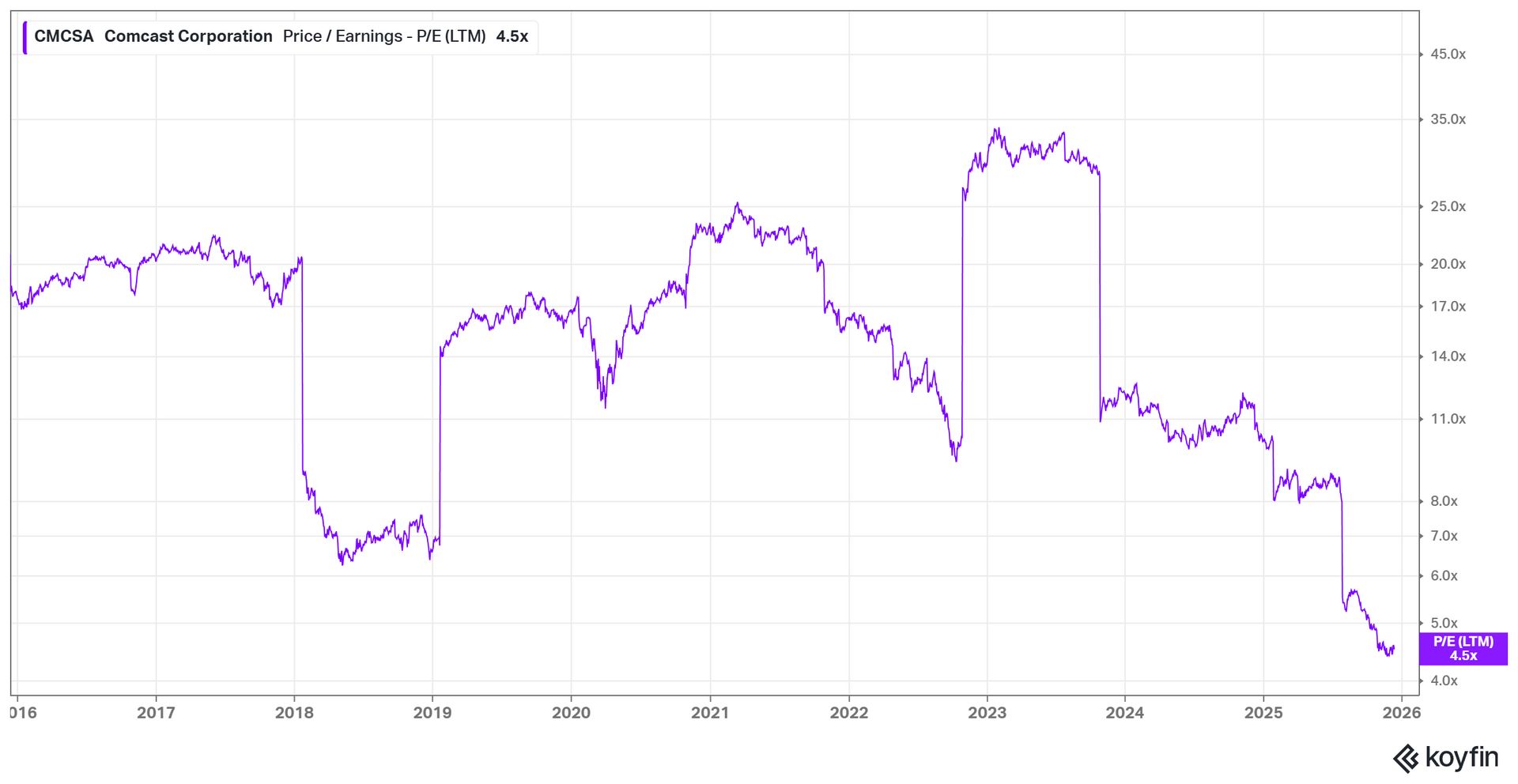 Take a look at Comcasts PE ratio. We’ve never seen it this low…and revenue and cashflow is growing.