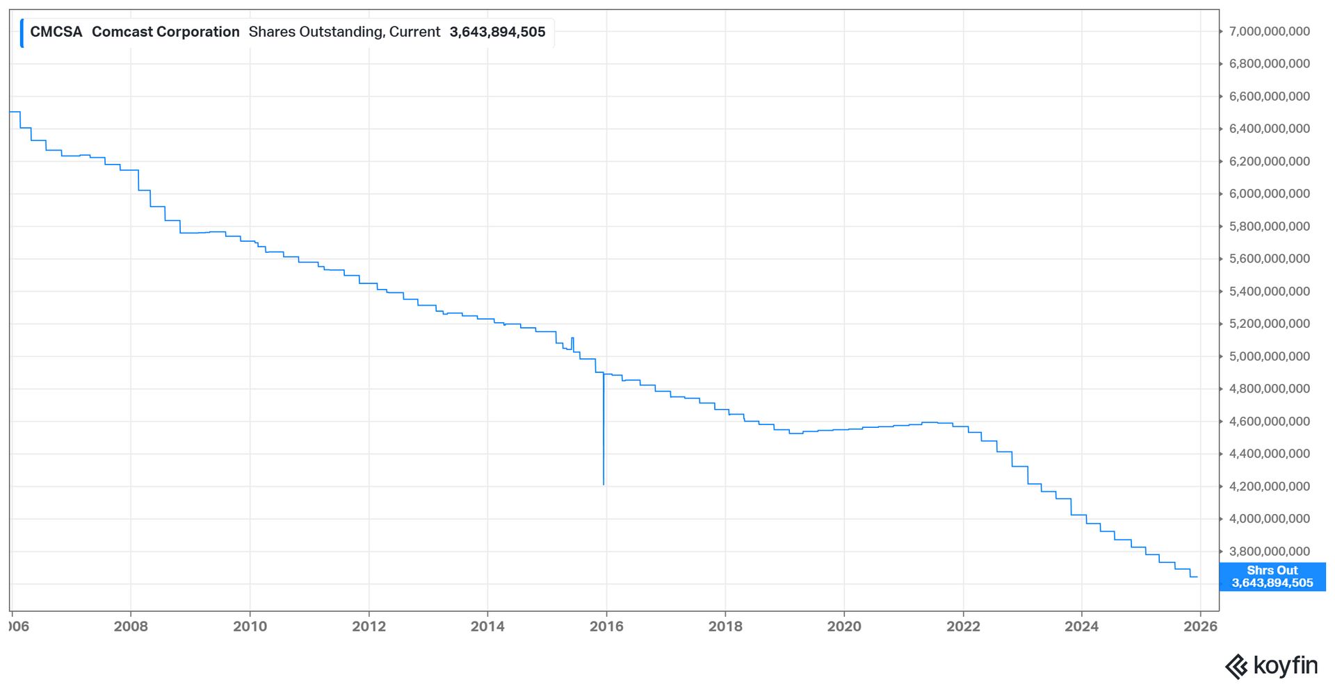 Comcast has been doing buybacks for years. They are prudent allocators of capital. Take a look at its outstanding sharecount.