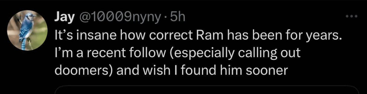 Big picture, Q4 positive seasonality is ahead of us, and macro remains bullish (earnings up, productivity rising, labor supply cooler but orderly) - people overly concerned about recession risks.