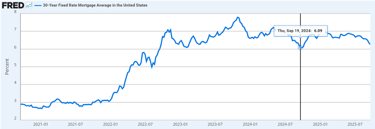 Interestingly, the same mortgage refinance bump took place the exact same week last year. The 30y rates bottomed out on Sep 19 '24.