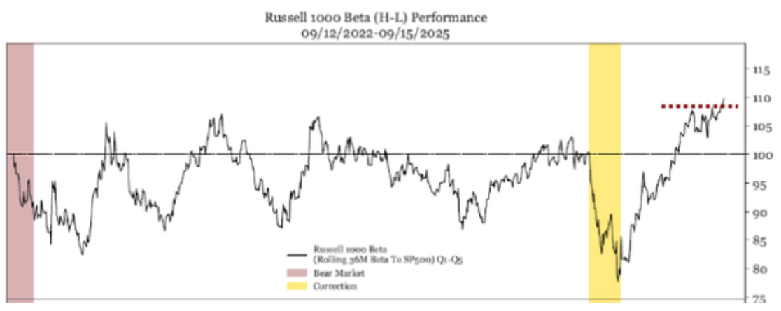Similar investor sentiment is reflected in high beta names. The high-minus-low beta index made a new high, confirming trust in economic expansion.
