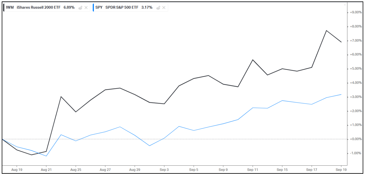 When the ten-year is heading down, own rate sensitive names like small caps.
