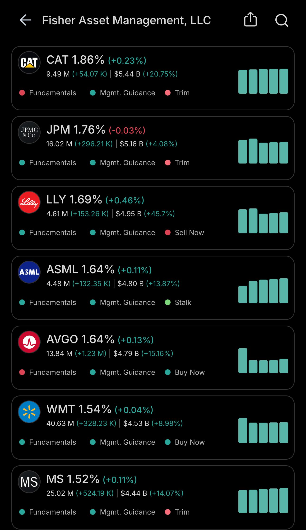 Fisher Investments, run by Ken Fisher, runs roughly $275 billion. I used the Lumida Invest app to check out his holdings on a whim.