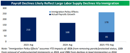 Payroll declines likely stem more from immigration policy curbing labor supply than demand destruction.
