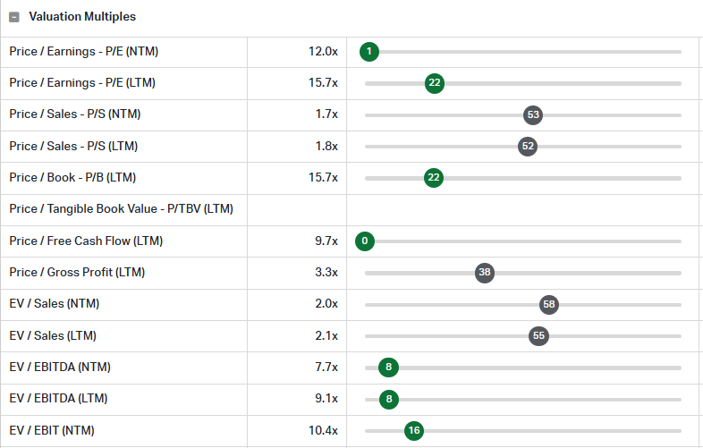 Look at where it trades. P/E NTM of 12x — sitting at the lowest of its 3Y history.
