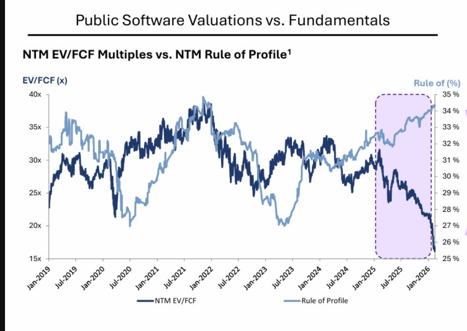 Every other period in three decades, software commanded a premium. The market is pricing software like it's in structural decline.