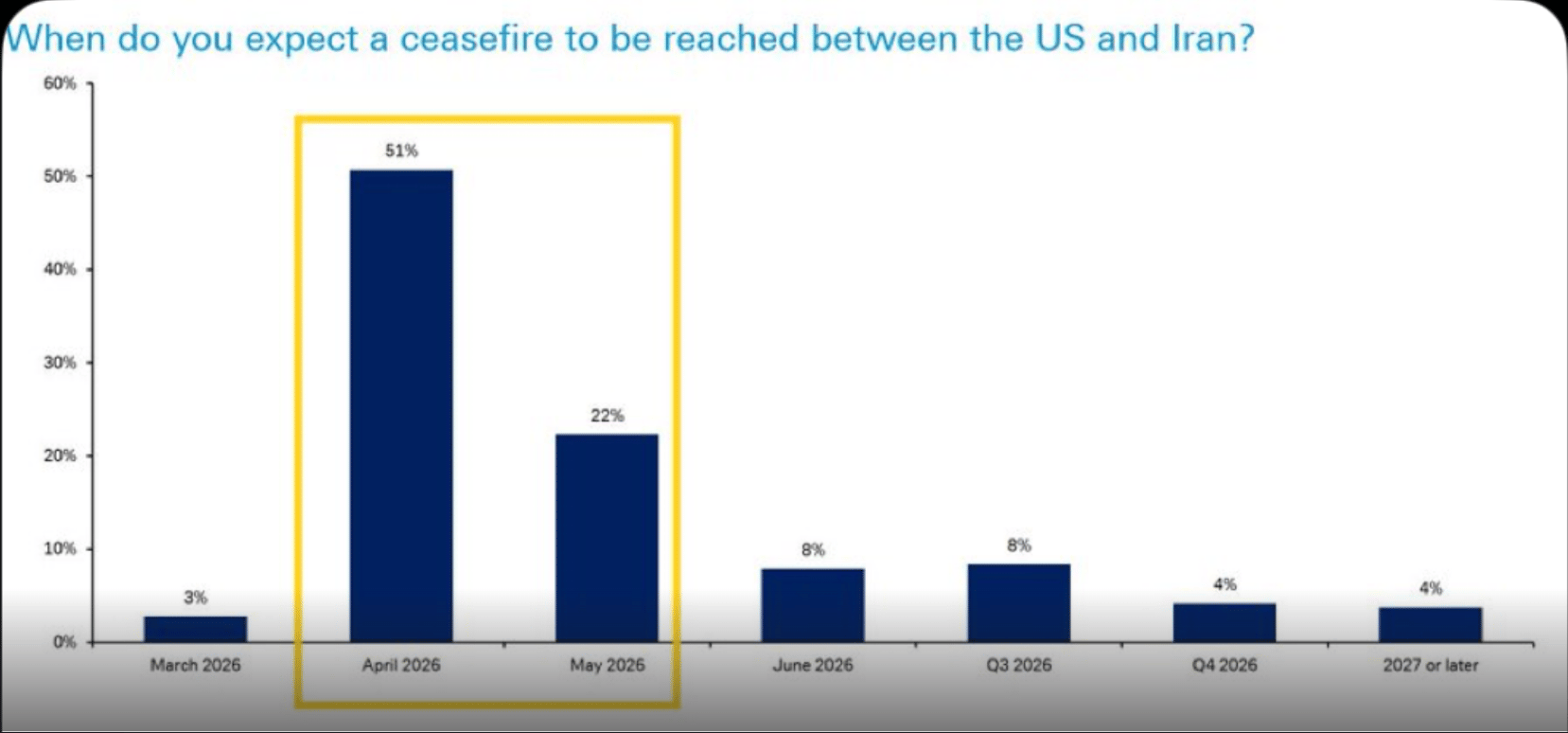 Here’s the results from a DB investors survey — most of them see the conflict ending in April 2026 with 3% expecting a March end.
