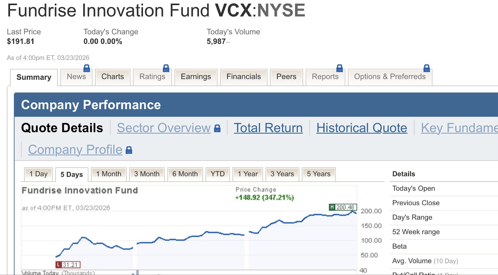 Note: As of the time of this writing, VCX since crashed 50%+. Bummer there was no way to short this monstrosity.