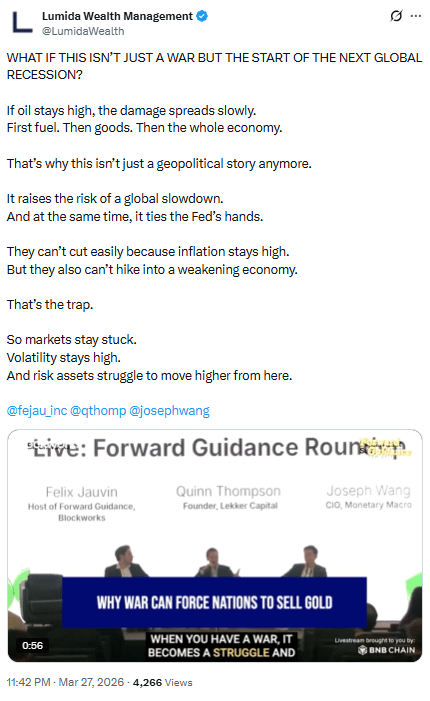 The global budget for oil was $2 to $3 Tn pre-conflict. It’s moving to $5 to $8 Tn. That spend must be funded by curtailments in spending elsewhere.